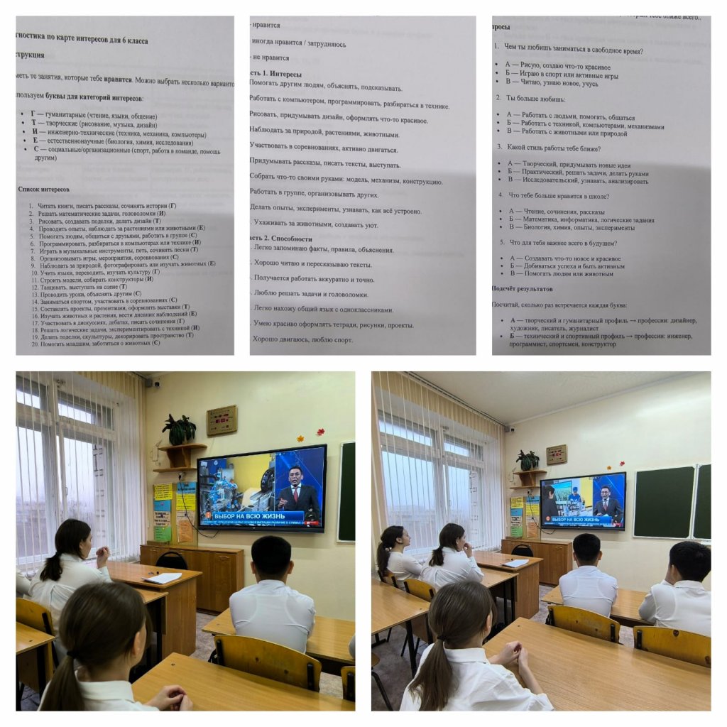 17 қарашада А.С. Пушкин атындағы № 3 көпсалалы мектеп-лицейінде 6 сынып оқушыларымен жеке бейімділік пен қызығушылықты анықтауға бағытталған кәсіптік бағдар беру жұмыстары жүргізілді. Іс — шара аясында балалар "Мүдделер картасы" бойынша диагностикадан өтті, бұл олардың шығармашылық және гуманитарлық салалардан бастап техникалық және әлеуметтік мамандықтарға дейінгі айқын бағыттарын анықтауға көмектесті. Сонымен қатар, оқушылар "Арман кәсібі" шағын тестін аяқтады, онда оларға өз тілектері, күшті жақтары мен болашақ мақсаттары туралы ойлану ұсынылды. Тестілеу нәтижелері әр қатысушыға өз қалауын жақсы түсінуге, ал сынып жетекшісіне оқушылардың кәсіби қызығушылықтарының жалпы көрінісін көруге мүмкіндік берді. Бұл жұмыс ерте кәсіптік бағдарлауға, оқуға деген ынтаны қалыптастыруға ықпал етеді және оқушыларға болашақ мамандықты саналы түрде таңдауға алғашқы қадамдар жасауға көмектеседі. Педагог-кәсіби бағдар беруші: Карунас Н.А.